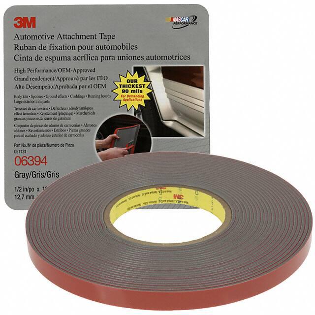 This is manufactured by 3M. The manufacturer part number is 06394. The product is a splendid acrylic adhesive. It is assigned with possible HTSUS value of 3919.10.2055. The product is rohs compliant. It is 0.0900" (90.0 mils, 2.286mm) thick. Furthermore, the product is 0.50" (12.70mm) 1/2" wide. This highly innovate tape is a double coated, double sided with effective applications. The product's typical Applications include uses in automotive. It is shipped in bulk. The product backing is made from an excellent liner. Its typical moisture sensitivity level is not applicable. Its accurate length is 30' (9.1m) 10 yds. It has a long 6 weeks standard lead time. It has a classic gray colour. The product is designated with the ear99 code number