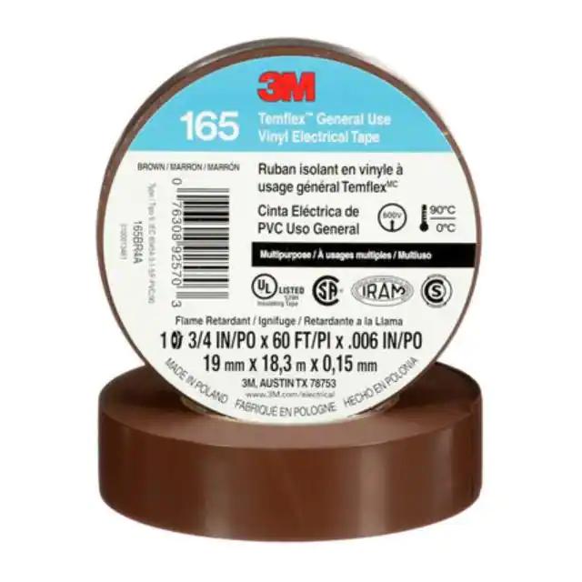 This is manufactured by 3M. The manufacturer part number is 165BR4A. The product is a splendid rubber adhesive. It is assigned with possible HTSUS value of 3919.90.5030. This highly innovate tape is a conformable vinyl with effective applications. It is 0.0060" (6.0 mils, 0.152mm) thick. Furthermore, the product is 0.75" (19.05mm) 3/4" wide. The product is highly reliable with a long-lasting period of 60 months. The product's typical Applications include uses in insulating. Its warranty starts from date of manufacture. The product's typical temperature range incudes 32°f ~ 194°f (0°c ~ 90°c) max. It is shipped in bulk. The product backing is made from an excellent pvc (poly vinyl chloride). Its typical moisture sensitivity level is not applicable. It offers storage features at 50°f ~ 81°f (10°c ~ 27°c). Its accurate length is 60' (18.3m) 20 yds. It has a long 6 weeks standard lead time. It has a classic brown colour. The product temflex™ 165, is a highly preferred choice for users. The product is designated with the ear99 code number