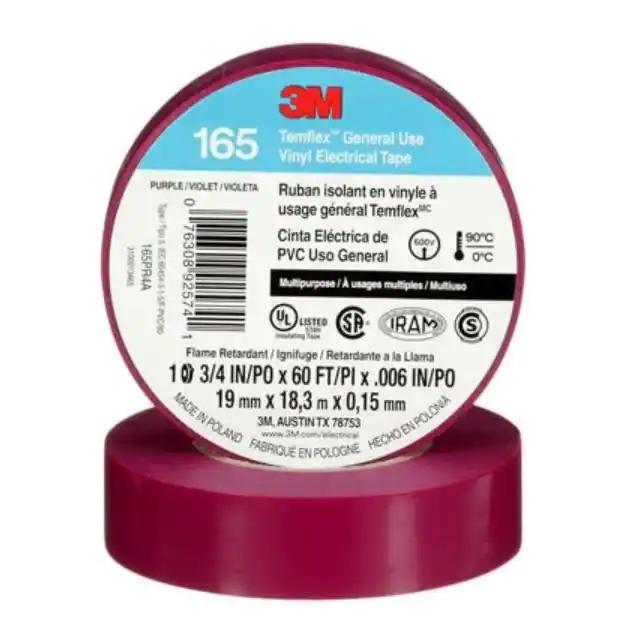 This is manufactured by 3M. The manufacturer part number is 165PR4A. The product is a splendid rubber adhesive. It is assigned with possible HTSUS value of 3919.90.5030. This highly innovate tape is a conformable vinyl with effective applications. It is 0.0060" (6.0 mils, 0.152mm) thick. Furthermore, the product is 0.75" (19.05mm) 3/4" wide. The product is highly reliable with a long-lasting period of 60 months. The product's typical Applications include uses in insulating. Its warranty starts from date of manufacture. The product's typical temperature range incudes 32°f ~ 194°f (0°c ~ 90°c) max. It is shipped in bulk. The product backing is made from an excellent pvc (poly vinyl chloride). Its typical moisture sensitivity level is not applicable. It offers storage features at 50°f ~ 81°f (10°c ~ 27°c). Its accurate length is 60' (18.3m) 20 yds. It has a long 6 weeks standard lead time. It has a classic purple colour. The product temflex™ 165, is a highly preferred choice for users. The product is designated with the ear99 code number