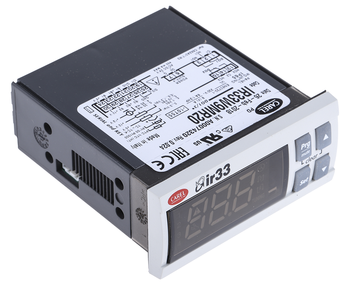 This is IR33 PID Temperature Controller 34.2 x 76.2mm 2 Output Relay 24 V ac/dc Supply Voltage manufactured by Carel. The manufacturer part number is IR33W9MR20. Additionally, the product is supplied with 2 outputs. The product is available in panel mount configuration. The product ir33, is a highly preferred choice for users. Furthermore, it has arelay output. The product's typical temperature range incudes -199 → +800 (pt100/1000) °c, -40 → +150 (ntc-ht) °c, -50 → +150 (ptc) °c. The product is available in 76.2 x 34.2mm size.