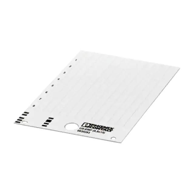 This is manufactured by Phoenix Contact. The manufacturer part number is 0830293. The product us-emp, is a highly preferred choice for users. It is a type of terminal block marker accessory. It is assigned with possible HTSUS value of 3919.90.5060. The product is rohs compliant. The product's body is manufactured from highly durable pvc materials. The background colour is white. The product is widely employed in device marker. It is shipped in bulk. Its typical moisture sensitivity level is 1 (unlimited). Its accurate length is 0.591" (15.00mm). A bespoke label is a die cut label. It has a long 7 weeks standard lead time. Furthermore, the product is 0.346" (8.80mm) wide. The product is designated with the ear99 code number