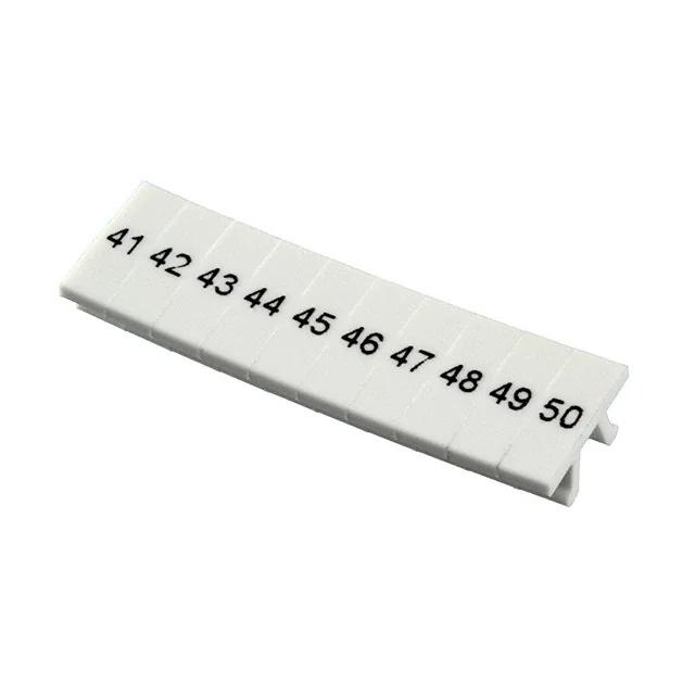 This is manufactured by Phoenix Contact. The manufacturer part number is 0801404:0041. It is assigned with possible HTSUS value of 3926.90.9985. It is shipped in bulk. It has a classic white colour. The product clipline, is a highly preferred choice for users. The product is rohs compliant. Its typical moisture sensitivity level is 1 (unlimited). The product is suitable for use with 3.5mm wide terminal blocks. It has a long 4 weeks standard lead time. It comes in label, snap in configuration. Legend Information: numbers, 41 through 50. The product is designated with the ear99 code number