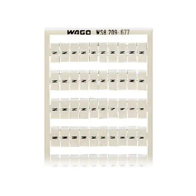 This is manufactured by WAGO Corporation. The manufacturer part number is 209-677. It is assigned with possible HTSUS value of 3926.90.9985. It is shipped in box. It has a classic white colour. The product wsb, is a highly preferred choice for users. The product is rohs3 compliant. Its typical moisture sensitivity level is not applicable. The product is suitable for use with 5mm wide terminal blocks. It has a long 12 weeks standard lead time. It comes in label, snap in configuration. Legend Information: letters, n. The product is designated with the ear99 code number