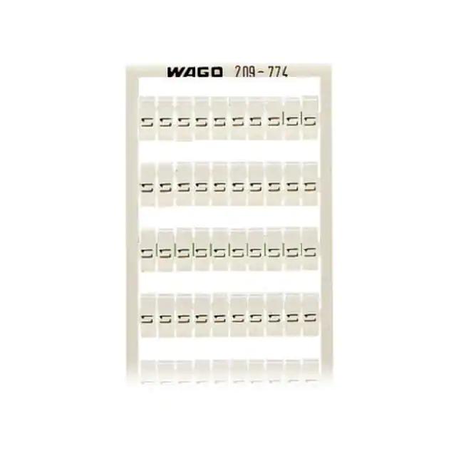 This is manufactured by WAGO Corporation. The manufacturer part number is 209-774. It is assigned with possible HTSUS value of 3926.90.9985. It is shipped in box. It has a classic white colour. The product wsb, is a highly preferred choice for users. The product is rohs3 compliant. Its typical moisture sensitivity level is not applicable. The product is suitable for use with 4mm wide terminal blocks. It has a long 12 weeks standard lead time. It comes in label, snap in configuration. Legend Information: l1. The product is designated with the ear99 code number