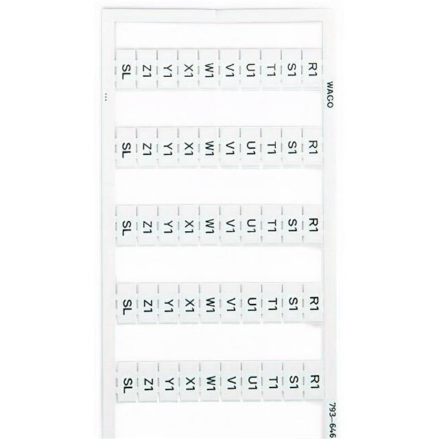 This is manufactured by WAGO Corporation. The manufacturer part number is 793-646. It is assigned with possible HTSUS value of 3926.90.9985. It is shipped in box. It has a classic white colour. The product wmb, is a highly preferred choice for users. The product is rohs3 compliant. Its typical moisture sensitivity level is not applicable. The product is suitable for use with 5mm wide terminal blocks. It has a long 12 weeks standard lead time. It comes in label, snap in configuration. Legend Information: r1 through z1, sl. The product is designated with the ear99 code number