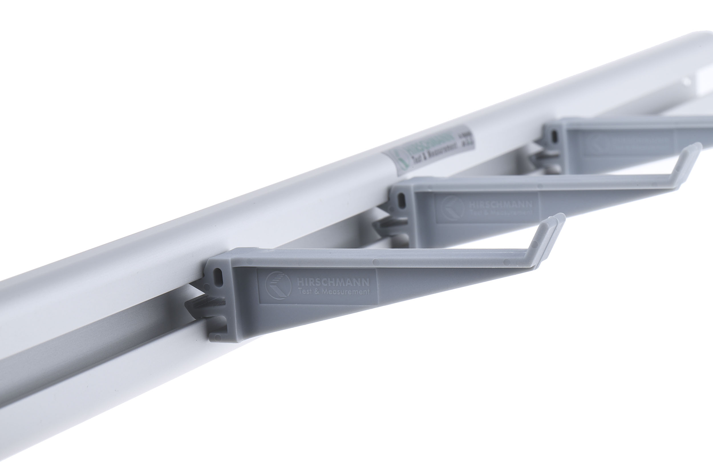 This is Grey Test Lead Holder 30 Slots manufactured by Hirschmann Test & Measurement. The manufacturer part number is 973919001. It is a type of test lead holder accessory. Its accurate length is 500mm. The product's body is nicely designed from aluminium materials.