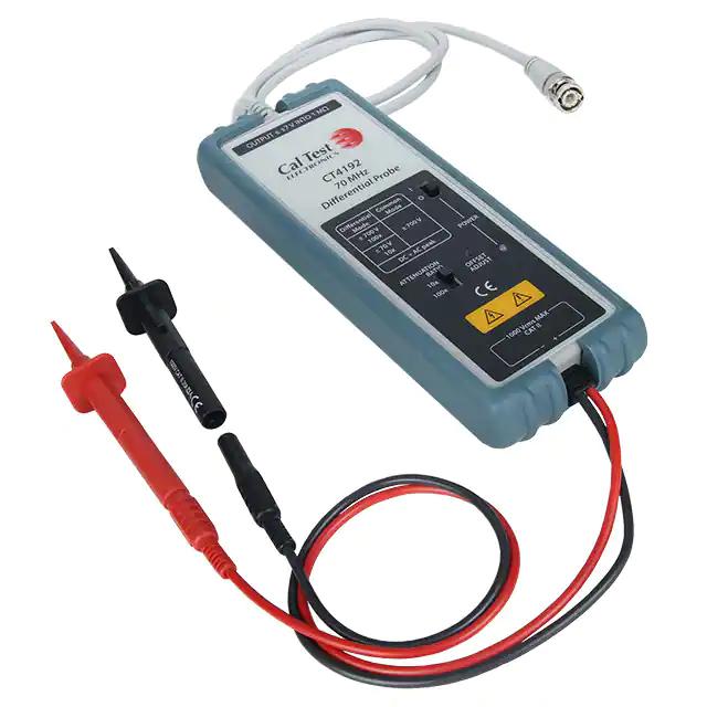 This is manufactured by Cal Test Electronics. The manufacturer part number is CT4192. It is assigned with possible HTSUS value of 9030.90.8911. The product is rohs3 compliant. In addition, it is reach unaffected. The given attenuation value involves 10:1, 100:1. It comes in active differential configuration. The product is also supplied with adjustment tool, batteries, probes. It is shipped in box. Its typical moisture sensitivity level is not applicable. It has a classic black and red colour. It has a maximum voltage of 700v (dc + acmax). Has 70mhz bandwidth. Furthermore, the cable has a 37.402" (950.00mm) of length. The product is designated with the ear99 code number