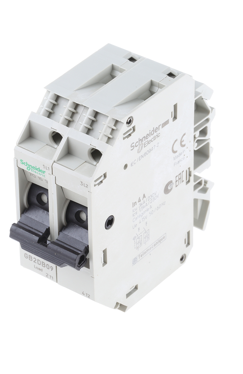 This is 4A 2P Pole Thermal Magnetic Circuit Breaker 277 V ac 415 V ac GB2 manufactured by Schneider Electric. The manufacturer part number is GB2DB09. The product has a current rating of 4a. Moreover, the product has a nominal 277 v ac, 415v ac voltage rating. The product gb2, is a highly preferred choice for users. Furthermore, the product is 30mm wide. It has equipped with 2 poles.