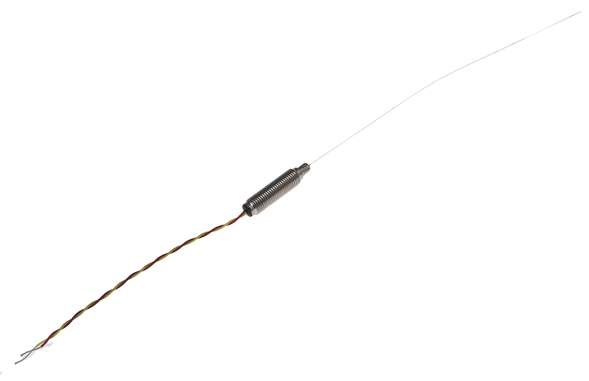 This is K Type Thermocouple Stainless Steel Probe 150mm Length 0.5mm diameter -100°C → +1100°C manufactured by RS Pro. The manufacturer part number is 847-1113. Furthermore, the cable has a 100mm of length.