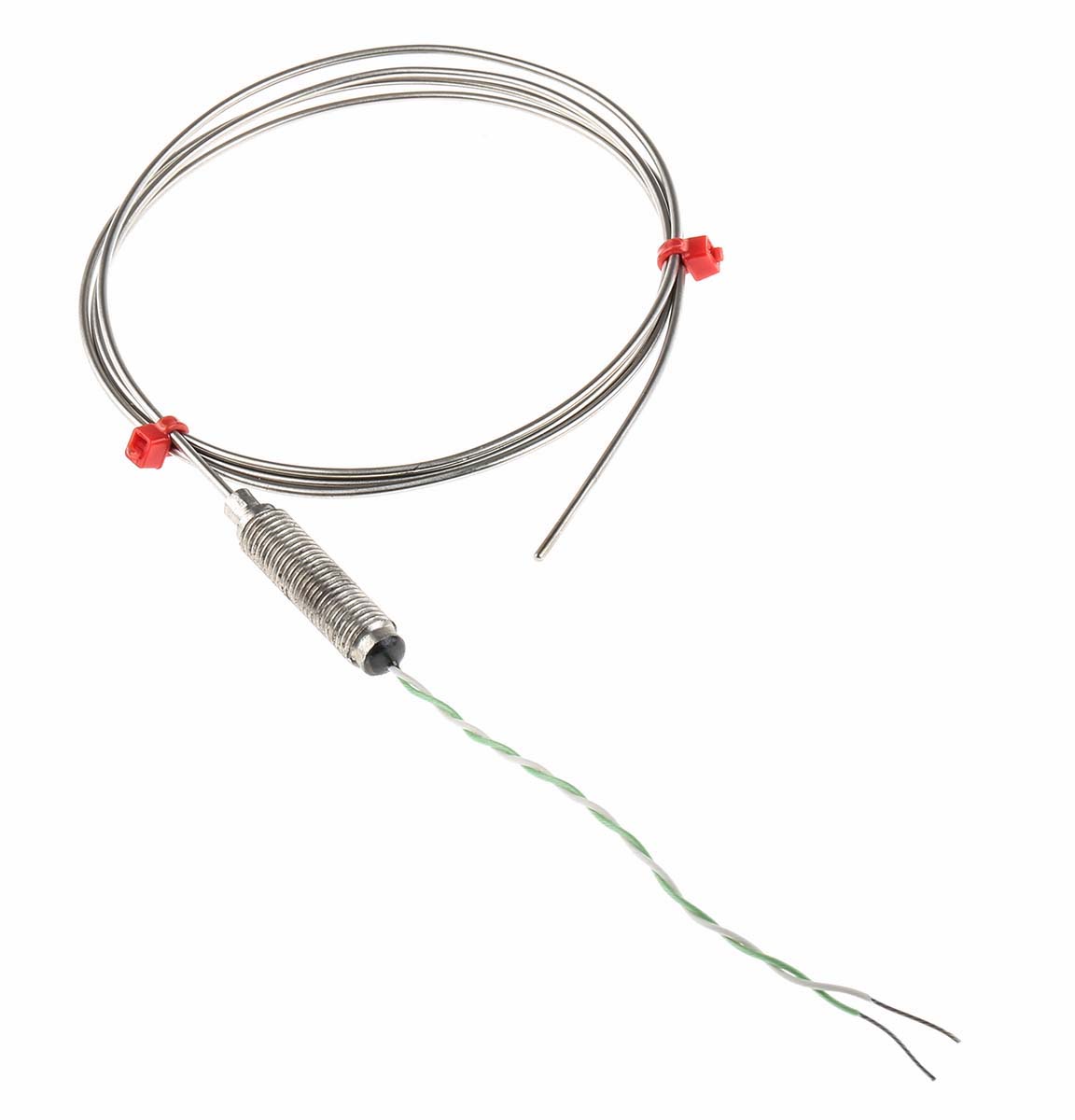 This is K Type Thermocouple Inconel 600 Probe 1m Length 1.5mm diameter 0°C → +1100°C manufactured by RS Pro. The manufacturer part number is 219-4472. Furthermore, the cable has a 100mm of length.