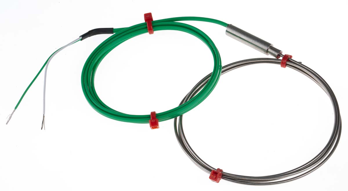 This is K Type Thermocouple Stainless Steel Probe 1m Length 1.5mm diameter -100°C → +1100°C manufactured by RS Pro. The manufacturer part number is 787-7728. Furthermore, the cable has a 1m of length.