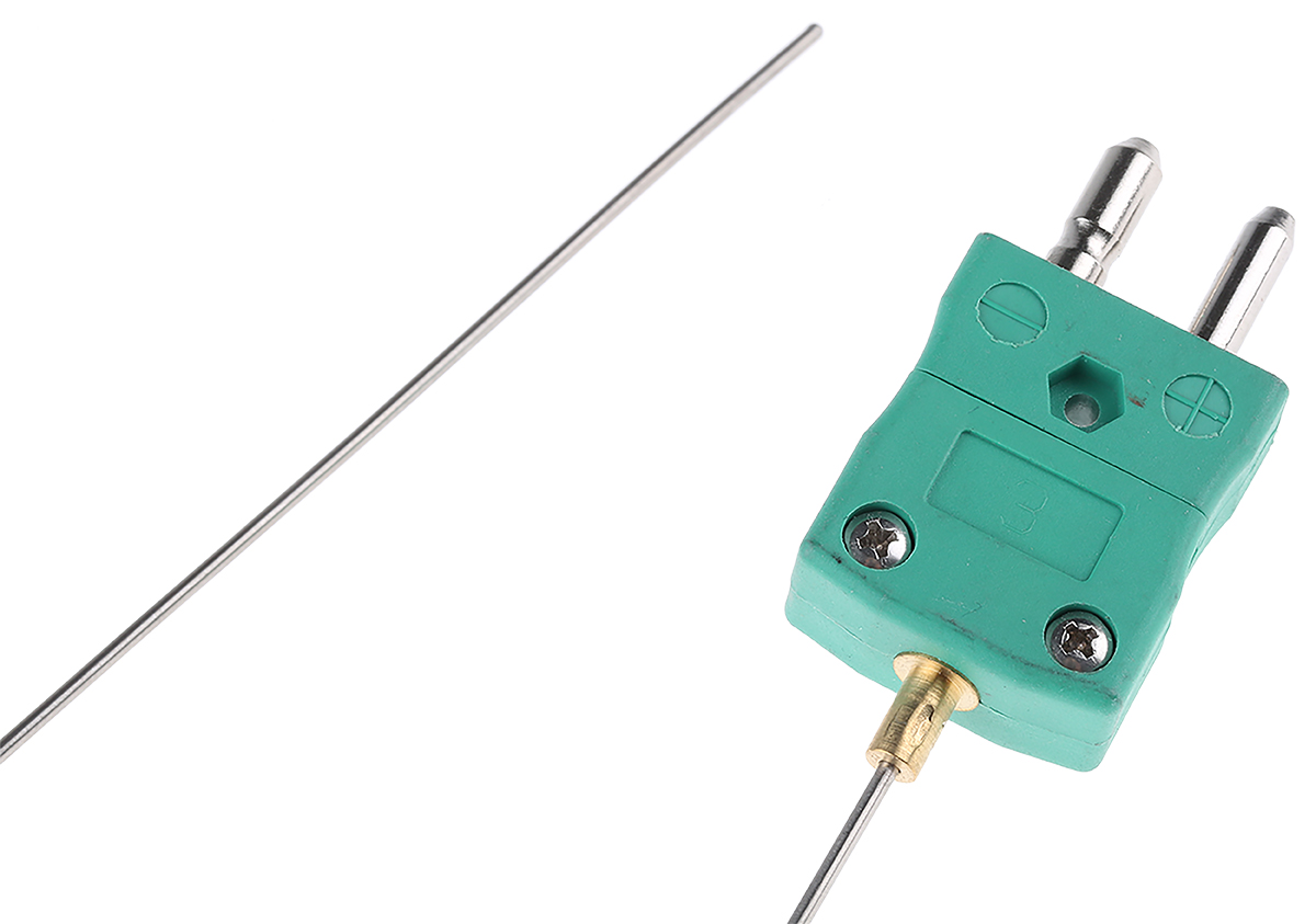 This is K Type Thermocouple Stainless Steel Probe 500mm Length 1.5mm diameter -100°C → +1100°C manufactured by RS Pro. The manufacturer part number is 787-7781. Furthermore, the cable has a 100mm of length.
