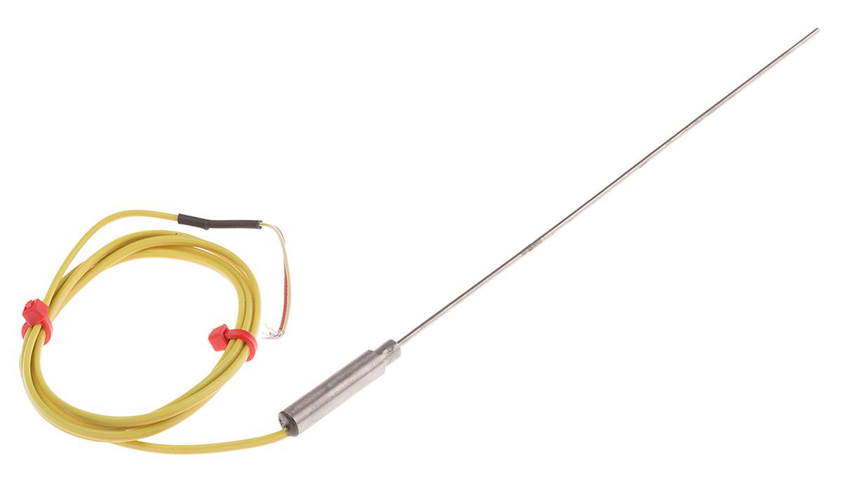 This is Type K Thermocouple 150mm Length 1.5mm diameter -100°C → 1100°C manufactured by RS Pro. The manufacturer part number is 847-1025. Furthermore, the cable has a 1m of length.