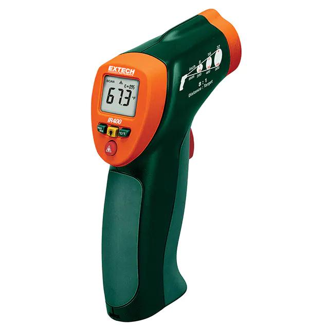 This is manufactured by FLIR Extech. The manufacturer part number is IR400. It features a remarkable lcd display. The splendid features of the product include auto off, backlight, hold, min/max. It is assigned with possible HTSUS value of 9025.19.8060. It is shipped in box. Its typical moisture sensitivity level is not applicable. The product is also supplied with battery, case. The battery has a 9v cell size. It carries infrared input type. It has a long 6 weeks standard lead time. It comes in handheld, gun configuration. The product is designated with the ear99 code number