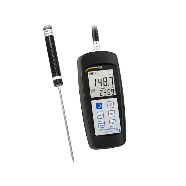 This is manufactured by PCE Instruments. The manufacturer part number is PCE-T 318. The product is not applicable. It carries probe, rtd input type. It comes in handheld configuration. In addition, it is vendor undefined. The product is also supplied with battery, manual, sensors. The product's typical temperature range incudes -148 ~ 572°f (-100 ~ 300°c). It is shipped in box. Its typical moisture sensitivity level is not applicable. The battery has a aaa (3) cell size. It features a remarkable lcd display. The splendid features of the product include auto off, backlight, hold, min/max/ave.