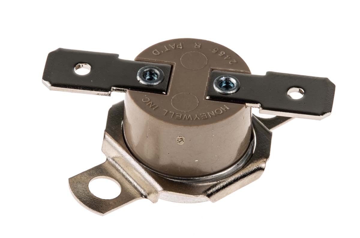 This is NC 10 A Bi-Metallic Thermostat Opens at+125°C manufactured by Honeywell. The manufacturer part number is 2455RP 9100-440 L125C. The terminal is a solder tab type.