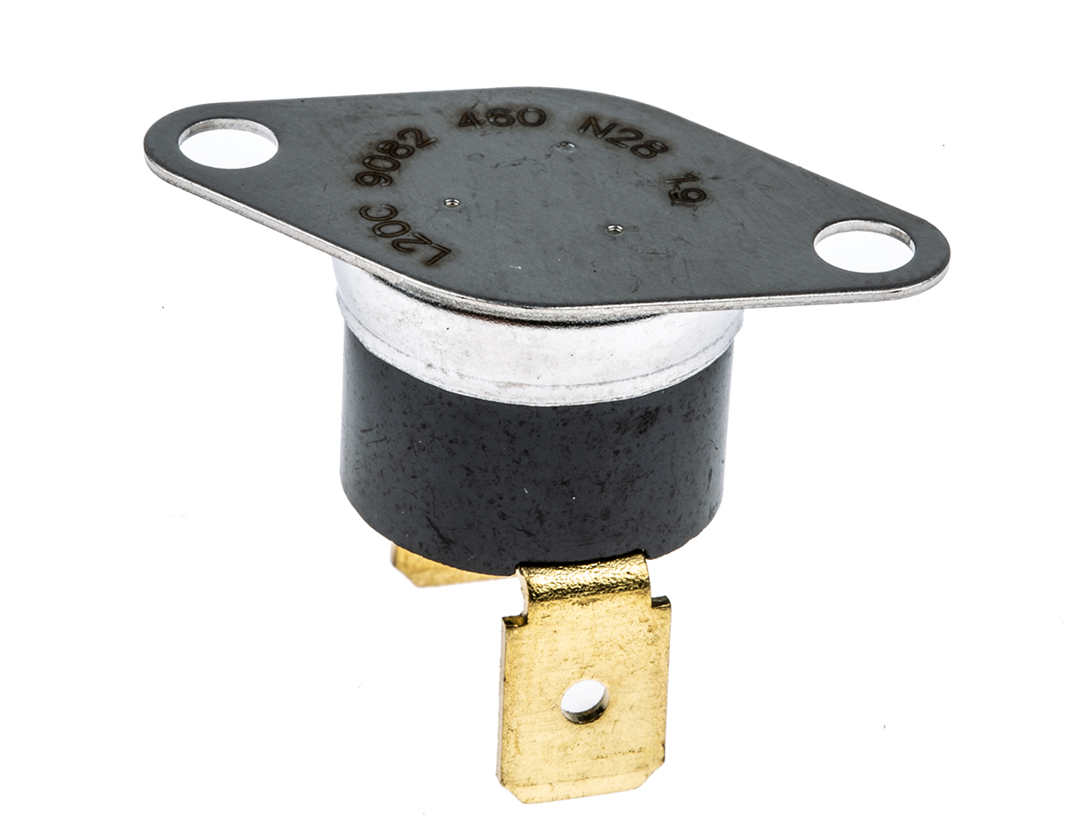 This is NC 15 A Bi-Metallic Thermostat Opens at+20°C manufactured by Honeywell. The manufacturer part number is 2455R 9082-460 L20C. The product is available in bracket mount configuration. The terminal is a quick connect type.