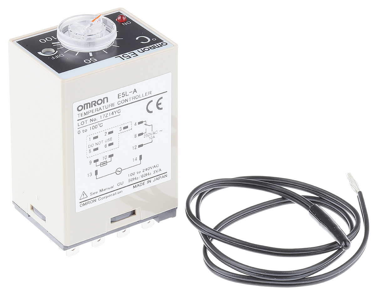 This is SPDT 10 A Thermostat 0°C +100°C manufactured by Omron. The manufacturer part number is E5LA0100. The product is available in bracket mount configuration. The terminal is a screw type.
