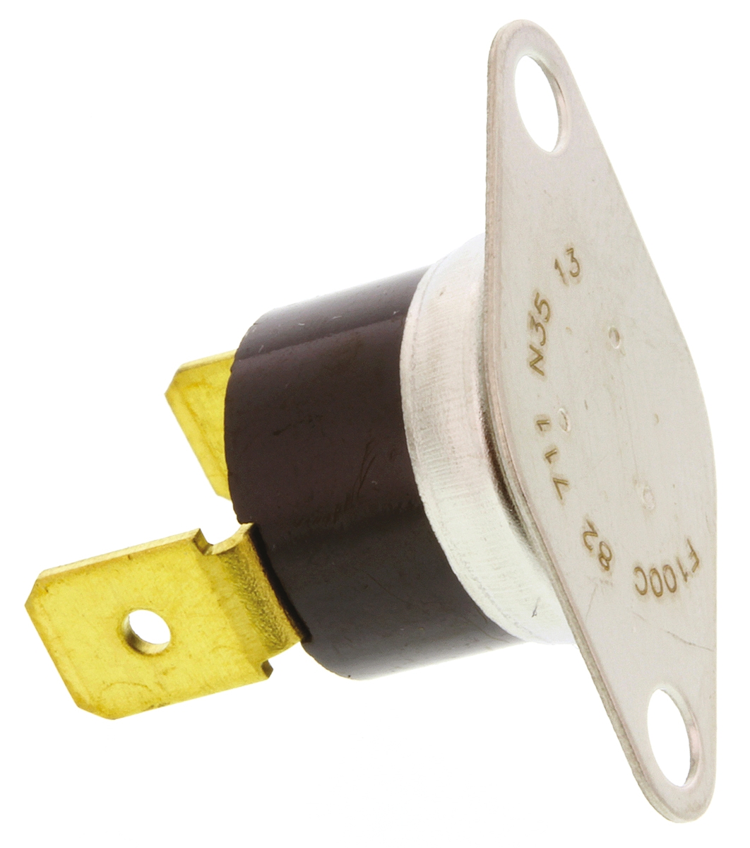 This is NO 15 A Bi-Metallic Thermostat Opens at+85°C manufactured by Honeywell. The manufacturer part number is 2455R 82-711 F100C. The terminal is a quick connect type.