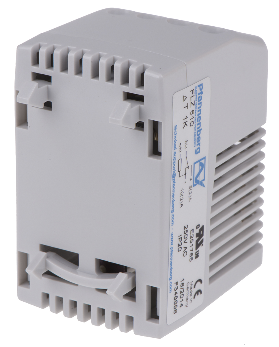 This is Enclosure Thermostat Adjustable Changeover DIN Rail 100 → 250 V ac manufactured by Pfannenberg. The manufacturer part number is FLZ510 17103000004. The product flz, is a highly preferred choice for users. The product's typical temperature range incudes +20 → +80 °c.