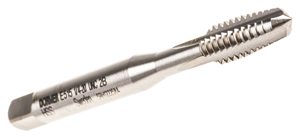 This is 3 Piece 1/4 in UNC HSS Straight Flute Tap Set Taper Tap; Second Tap and Plug Tap manufactured by Dormer. The manufacturer part number is E515 1/4 X 20 SET. It has a typical thread size of 1/4 unc. The product is made from highly stable and reliable hss. It comes in straight flute configuration.