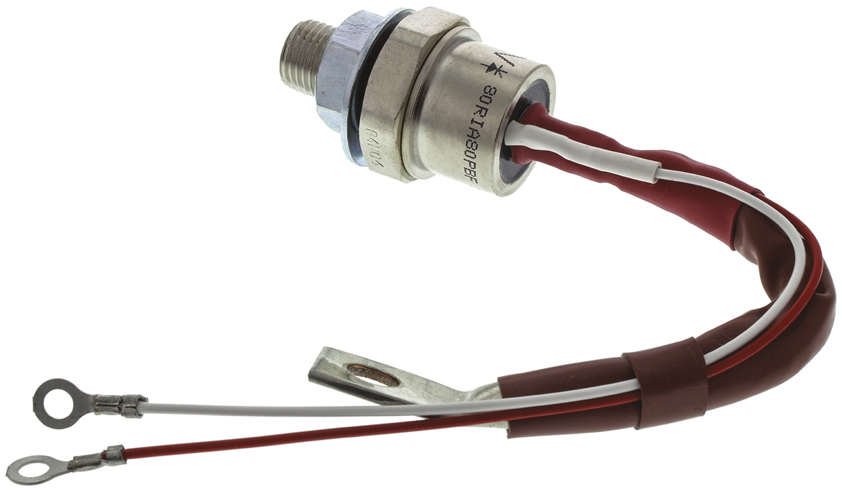 This is Thyristor 800V 80A 120mA 3-Pin TO-94 manufactured by Vishay. The manufacturer part number is VS-80RIA80PBF. The given dimensions of the product include 29.5 x 27 x 188mm. The product is available in thread mount configuration. Whereas, the minimum operating temperature of the product is -40 °c. It has a maximum operating temperature of +125 °c.