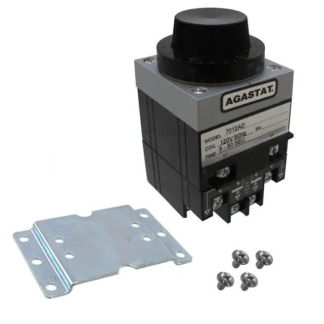 This is manufactured by TE Connectivity Aerospace, Defense and Marine. The manufacturer part number is 7012AD. It is assigned with possible HTSUS value of 8536.49.0075. The product is rohs non-compliant. This is basically a mechanical relay. Moreover, it has screw terminal terminal style. It performs basic function of on-delay. In addition, it is reach unaffected. It is shipped in bulk. Its typical moisture sensitivity level is not applicable. It has an integral dpdt (2 form c) circuit. The given contact rating of the product and its voltage includes 10a @ 240vac. It has a long 10 weeks standard lead time. A product has a 5 sec ~ 50 sec delay time. The product is available in panel mount configuration. The product 7000, agastat, is a highly preferred choice for users. It has optimum voltage supply of 120vac. Moreover, it corresponds to 7012, a base product number of the product. The product is designated with the ear99 code number