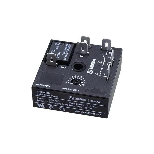 This is manufactured by Littelfuse Inc.. The manufacturer part number is KRD9220B. It is assigned with possible HTSUS value of 9107.00.8000. The product is rohs3 compliant. This is basically a mechanical relay. Moreover, it has quick connect - 0.250" (6.3mm) terminal style. It performs basic function of one shot. In addition, it is reach unaffected. It is shipped in bulk. Its typical moisture sensitivity level is not applicable. It has an integral spdt (1 form c) circuit. The given contact rating of the product and its voltage includes 10a @ 125vac. It has a long 55 weeks standard lead time. A product has a 0.1 sec ~ 10 sec delay time. The product is available in chassis mount configuration. The product krd9, is a highly preferred choice for users. It has optimum voltage supply of 24vac/dc. The product is designated with the ear99 code number