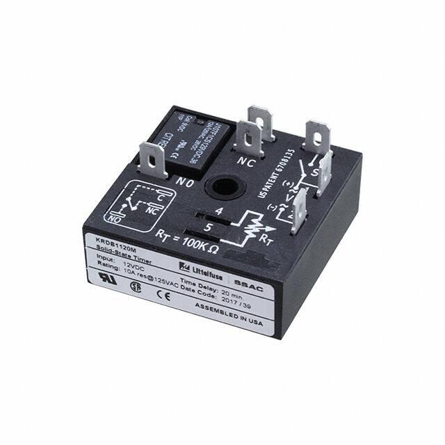 This is manufactured by Littelfuse Inc.. The manufacturer part number is KRDB1120M. It is assigned with possible HTSUS value of 9107.00.8000. The product is rohs3 compliant. This is basically a mechanical relay. Moreover, it has quick connect - 0.250" (6.3mm) terminal style. It performs basic function of off-delay. In addition, it is reach unaffected. It is shipped in bulk. Its typical moisture sensitivity level is not applicable. It has an integral spdt (1 form c) circuit. The given contact rating of the product and its voltage includes 10a @ 125vac. It has a long 12 weeks standard lead time. A product has a fixed, 20 min delay time. The product is available in chassis mount configuration. The product krdb, is a highly preferred choice for users. It has optimum voltage supply of 12vdc. The product is designated with the ear99 code number