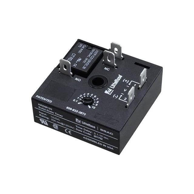 This is manufactured by Littelfuse Inc.. The manufacturer part number is KRDM120. It is assigned with possible HTSUS value of 8536.41.0060. The product is rohs3 compliant. This is basically a mechanical relay. Moreover, it has quick connect - 0.250" (6.3mm) terminal style. It performs basic function of on-delay. In addition, it is reach unaffected. It is shipped in bulk. Its typical moisture sensitivity level is not applicable. It has an integral spdt (1 form c) circuit. The given contact rating of the product and its voltage includes 10a @ 125vac. It has a long 12 weeks standard lead time. A product has a 0.1 sec ~ 10 sec delay time. The product is available in chassis mount configuration. The product krdm, is a highly preferred choice for users. It has optimum voltage supply of 12vdc. The product is designated with the ear99 code number