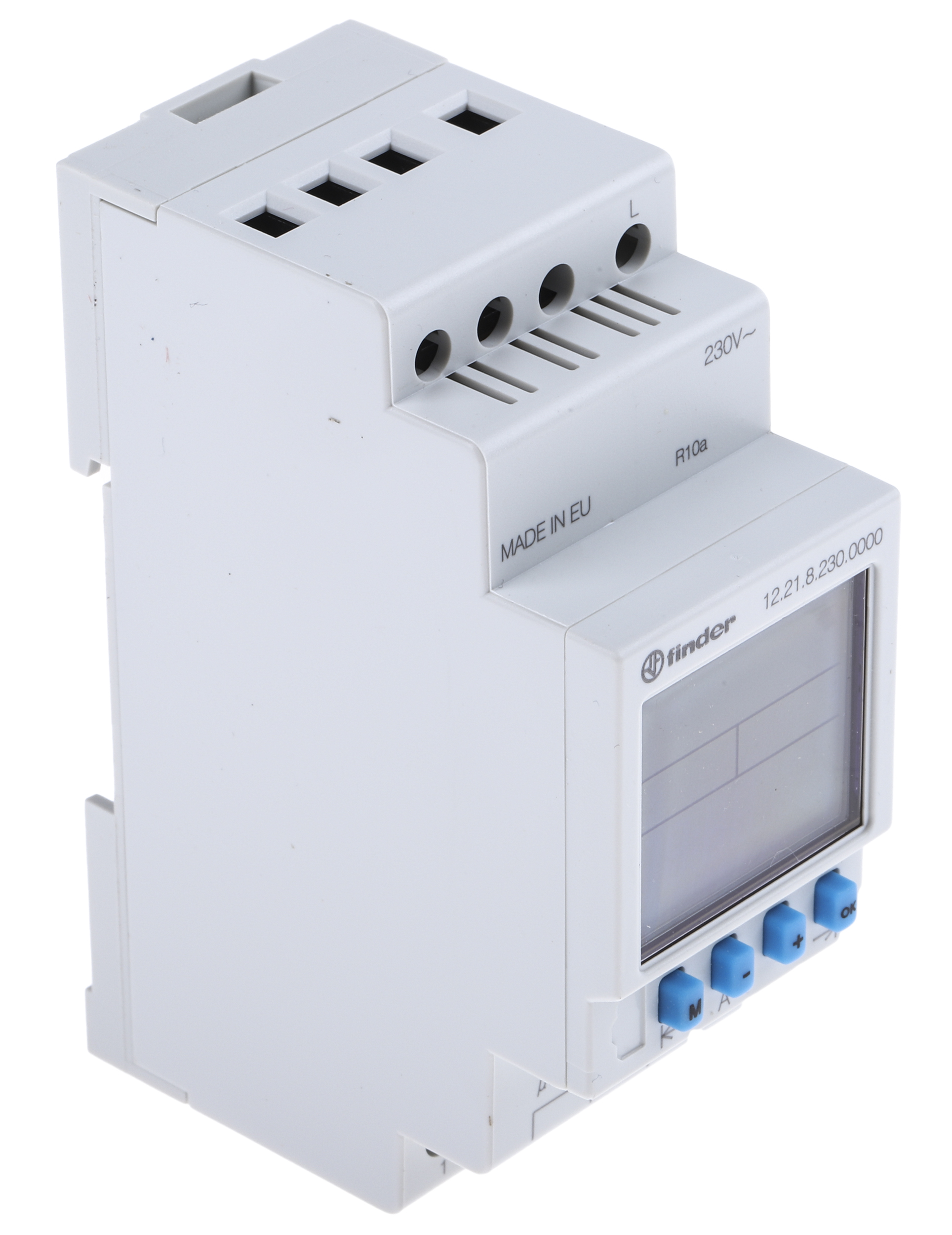This is SPDT elct 7day timeswitch manufactured by Finder. The manufacturer part number is 12.21.8.230.0000. In addition, the height is 90mm. The product comes in 44mm depth. It is supplied with 1 channels. It comes in digital configuration.