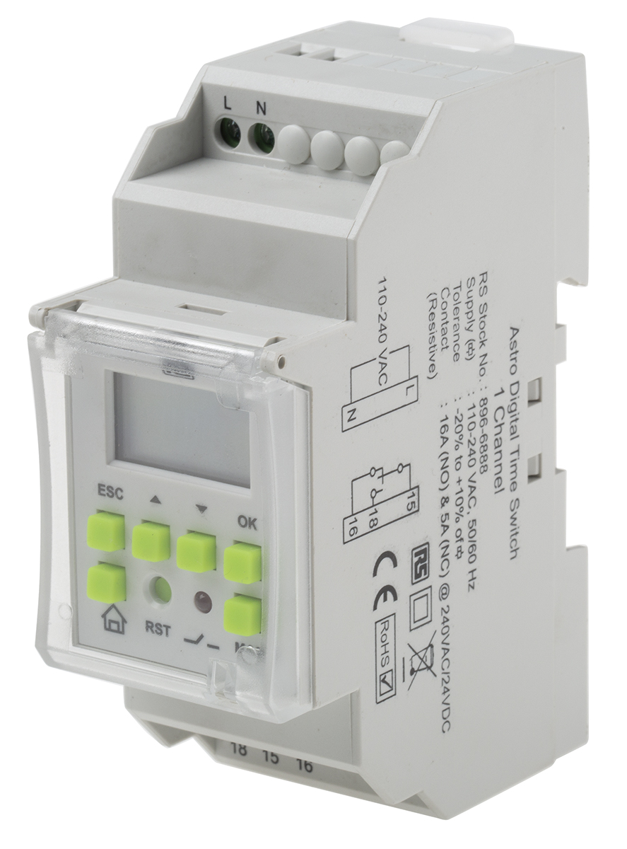 This is 3 Channel Digital DIN Rail Switch Measures Hours 110 → 240 V ac manufactured by RS Pro. The manufacturer part number is 896-6888. In addition, the height is 90mm. The product comes in 65mm depth. It is supplied with 1 channels. It comes in digital configuration.