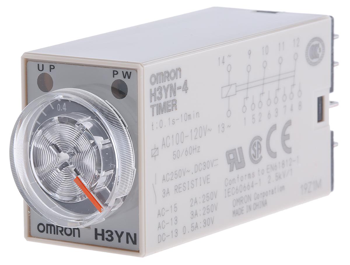 This is Multi Function Timer Relay Socket 0.1 s → 10 min 4 Contacts 4PDT 100 → 120 V ac manufactured by Omron. The manufacturer part number is H3YN-4 AC100-120. The product is available in din rail, panel mount configuration. The product h3yn, is a highly preferred choice for users. Its accurate length is 28mm. Furthermore, the product is 21.5mm wide. The product comes in 63mm depth. Whereas, the minimum operating temperature of the product is -10°c. The product contains 4 contacts. It has a maximum operating temperature of +50°c. The terminal is a socket type.