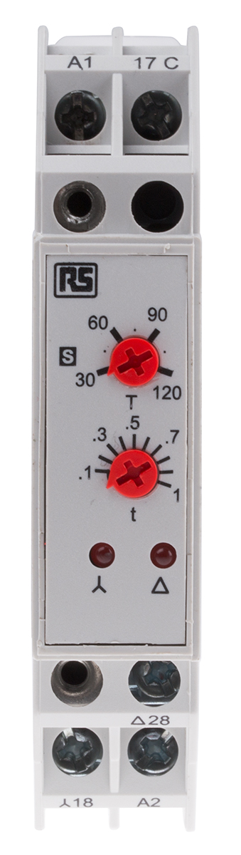 This is Star Delta Single Timer Relay Screw 3 → 120 s SPNO 2 Contacts SP 240 V ac manufactured by RS Pro. The manufacturer part number is 896-6838. The product is available in din rail configuration. Its accurate length is 17.5mm. Furthermore, the product is 90mm wide. The product comes in 58.5mm depth. Whereas, the minimum operating temperature of the product is -10°c. The product contains 2 contacts. It has a maximum operating temperature of +55°c. The terminal is a screw type.