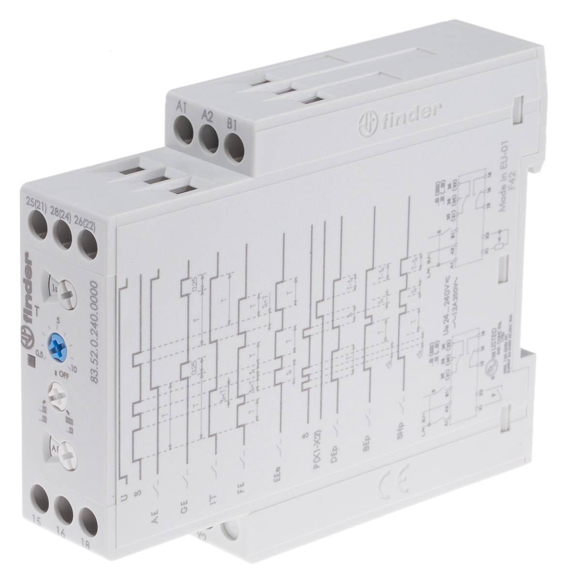This is Multi Function Timer Relay Screw 0.05 s → 10 days DPDT 2 Contacts DPDT 24 → 240 V ac manufactured by Finder. The manufacturer part number is 83.52.0.240.0000. The product is available in din rail configuration. The product 83 series, is a highly preferred choice for users. Its accurate length is 22.5mm. Furthermore, the product is 100.3mm wide. The product comes in 86.2mm depth. Whereas, the minimum operating temperature of the product is -20°c. The product contains 2 contacts. It has a maximum operating temperature of +60°c. The terminal is a screw type. The product is made from sturdy silver nickel materials.