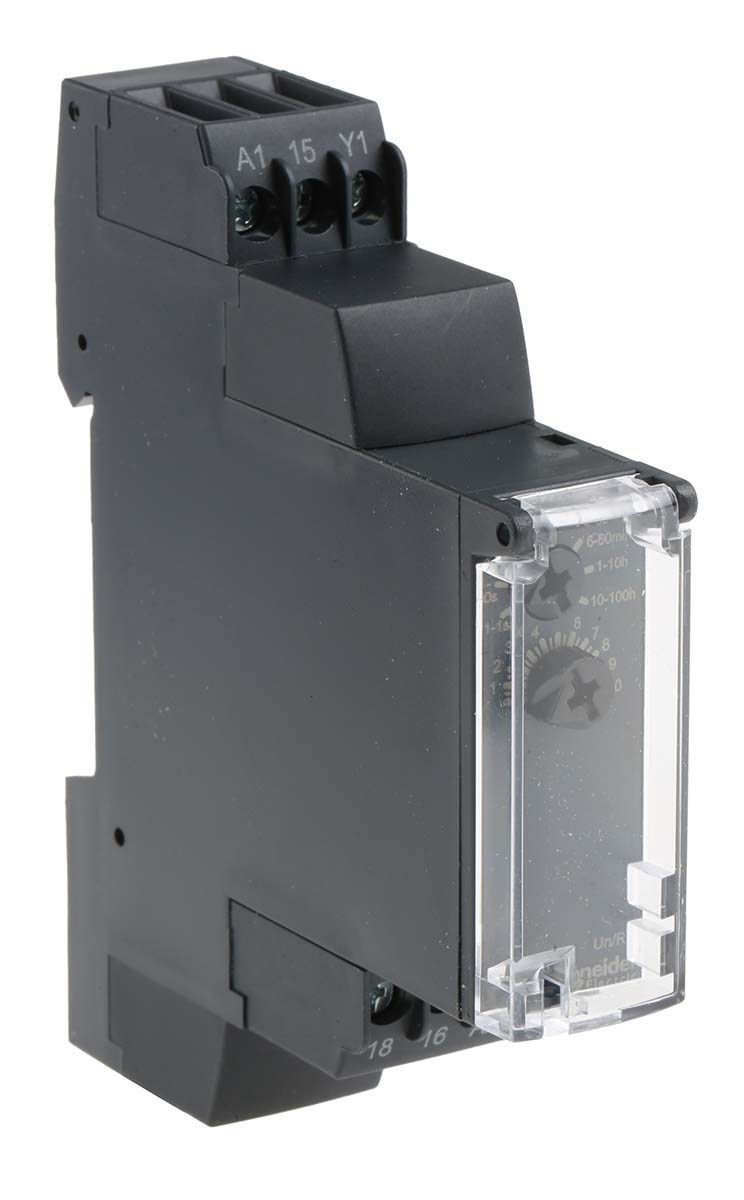 This is One Shot Single Timer Relay Screw 0.1 s → 100 h SPDT 2 Contacts SPDT 24 V dc 24 → 240 V ac manufactured by Schneider Electric. The manufacturer part number is RE17RBMU. Furthermore, the product is 17.5mm wide. It has a maximum operating temperature of +60°c. The terminal is a screw type. Its accurate length is 90mm. The product is available in din rail configuration. The product re17, is a highly preferred choice for users. The product comes in 72mm depth. Whereas, the minimum operating temperature of the product is -20°c. The product contains 2 contacts.