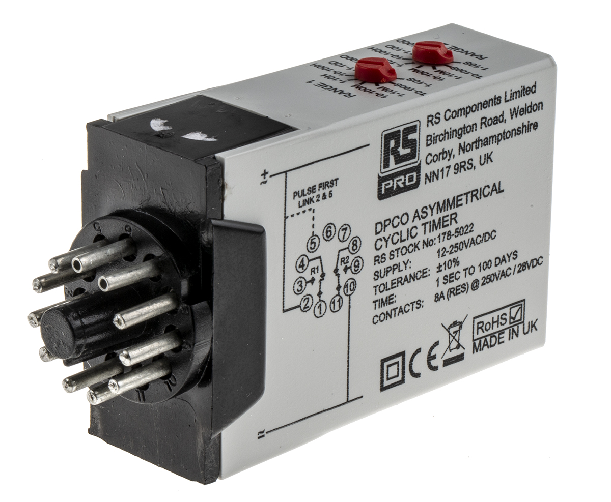 This is Time Delay Relay manufactured by RS PRO. The manufacturer part number is 178-5022. The product is available in plug in configuration. It has a maximum operating temperature of +65°c. Its accurate length is 48mm. Furthermore, the product is 24mm wide. The product comes in 74mm depth. Whereas, the minimum operating temperature of the product is -20°c. The terminal is a 11-pin connector type.