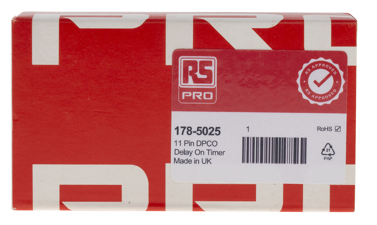 This is On-Delay timing relay Multi-time range manufactured by RS PRO. The manufacturer part number is 178-5025. The product is available in plug in configuration. It has a maximum operating temperature of +65°c. Its accurate length is 48mm. Furthermore, the product is 24mm wide. The product comes in 74mm depth. Whereas, the minimum operating temperature of the product is -20°c. The terminal is a 11-pin connector type.