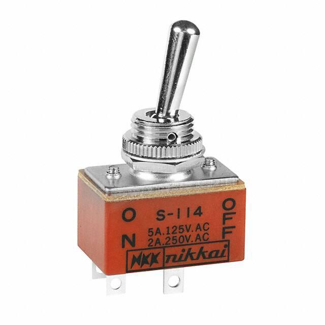 This is manufactured by NKK Switches. The manufacturer part number is S114. It is assigned with possible HTSUS value of 8536.50.9065. The product is rohs3 compliant. The product offers long-lasting services of 10,000 cycles. Moreover, it has solder lug terminal style. 30 v of DC voltage rating. The product has -10°c ~ 70°c operating temperature range. It also has a circular - 12.50mm dia dimensional features. The actuator is a 18.00mm long. The product exhibits 125 v of AC voltage rating. In addition, it is reach unaffected. It is shipped in bulk. It is designed as a on-off switching function. Its typical moisture sensitivity level is 1 (unlimited). It has an integral dpst circuit. Additionally, the product's output is 5a (ac/dc) The product is available in panel mount configuration. The product s, is a highly preferred choice for users. The product has bushing thread of m12 x 1. The product carries standard round actuator. Is this product illuminated? non-illuminated. The actuator is designed from sturdy brass, chrome plated material. The product is designated with the ear99 code number
