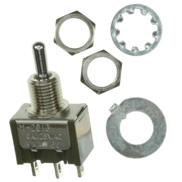 This is manufactured by NKK Switches. The manufacturer part number is M2013S2A1W01. It is assigned with possible HTSUS value of 8536.50.9065. The product is rohs3 compliant. The product offers long-lasting services of 25,000 cycles. Moreover, it has solder lug terminal style. 30 v of DC voltage rating. The product has -30°c ~ 85°c operating temperature range. It also has a circular - 6.50mm dia dimensional features. The actuator is a 6.86mm long. The product exhibits 125 v of AC voltage rating. In addition, it is reach unaffected. It is shipped in bulk. It is designed as a on-off-on switching function. Its typical moisture sensitivity level is 1 (unlimited). It has an integral spdt circuit. It has a long 20 weeks standard lead time. Additionally, the product's output is 6a (ac), 3a (dc) The splendid features of the product include epoxy sealed terminals. The product is available in panel mount configuration. The product m, is a highly preferred choice for users. The product has bushing thread of 1/4-40. The product carries standard round actuator. Is this product illuminated? non-illuminated. The actuator is designed from sturdy brass, chrome plated material. Moreover, it corresponds to m2013s2, a base product number of the product. The product is designated with the ear99 code number