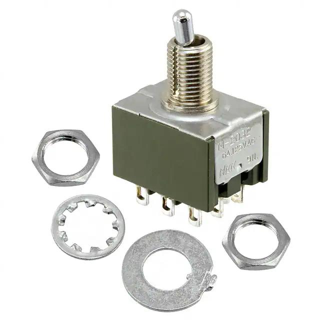 This is manufactured by NKK Switches. The manufacturer part number is M2032S2S1W01. It is assigned with possible HTSUS value of 8536.50.9065. The product is rohs3 compliant. The product offers long-lasting services of 25,000 cycles. Moreover, it has solder lug terminal style. 30 v of DC voltage rating. The product has -30°c ~ 85°c operating temperature range. It also has a circular - 6.50mm dia dimensional features. The actuator is a 5.08mm long. The product exhibits 125 v of AC voltage rating. In addition, it is reach unaffected. It is shipped in bulk. It is designed as a on-on switching function. Its typical moisture sensitivity level is 1 (unlimited). It has an integral 3pdt circuit. It has a long 20 weeks standard lead time. Additionally, the product's output is 6a (ac), 4a (dc) The splendid features of the product include epoxy sealed terminals. The product is available in panel mount configuration. The product m, is a highly preferred choice for users. The product has bushing thread of 1/4-40. The product carries standard round actuator. Is this product illuminated? non-illuminated. The actuator is designed from sturdy brass, chrome plated material. Moreover, it corresponds to m2032s2, a base product number of the product. The product is designated with the ear99 code number