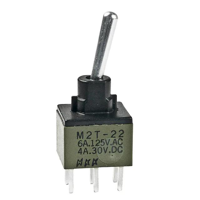 This is manufactured by NKK Switches. The manufacturer part number is M2T22SA5W03. It is assigned with possible HTSUS value of 8536.50.9065. The product is rohs3 compliant. The product offers long-lasting services of 25,000 cycles. Moreover, it has pc pin terminal style. 30 v of DC voltage rating. The product has -30°c ~ 85°c operating temperature range. The actuator is a 12.70mm long. The product exhibits 125 v of AC voltage rating. In addition, it is reach unaffected. It is shipped in tray. It is designed as a on-on switching function. Its typical moisture sensitivity level is 1 (unlimited). It has an integral dpdt circuit. Additionally, the product's output is 6a (ac), 4a (dc) The splendid features of the product include process sealed. The product is available in through hole configuration. The product m2, is a highly preferred choice for users. The product has bushing thread of unthreaded. The product carries standard round actuator. Is this product illuminated? non-illuminated. The actuator is designed from sturdy brass, nickel plated material. The product is designated with the ear99 code number