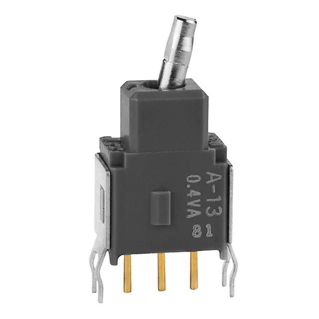 This is manufactured by NKK Switches. The manufacturer part number is A13KB. It is assigned with possible HTSUS value of 8536.50.9065. The product is rohs3 compliant. The product offers long-lasting services of 50,000 cycles. Moreover, it has pc pin terminal style. 28 v of DC voltage rating. The product has -30°c ~ 85°c operating temperature range. The actuator is a 5.00mm long. The product exhibits 28 v of AC voltage rating. In addition, it is reach unaffected. It is shipped in bulk. It is designed as a on-off-on switching function. Its typical moisture sensitivity level is 1 (unlimited). It has an integral spdt circuit. It has a long 21 weeks standard lead time. Additionally, the product's output is 0.4va (ac/dc) The splendid features of the product include process sealed. The product is available in through hole configuration. The product a, is a highly preferred choice for users. The product has bushing thread of unthreaded, square. The product carries lever for cap actuator. Is this product illuminated? non-illuminated. The actuator is designed from sturdy polyamide (pa), nylon, glass filled material. The product is designated with the ear99 code number