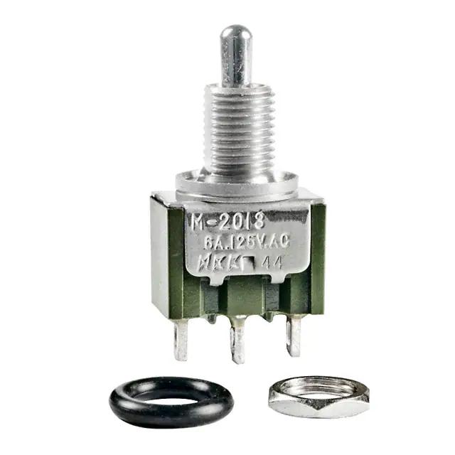 This is manufactured by NKK Switches. The manufacturer part number is M2013S2D3W01. It is assigned with possible HTSUS value of 8536.50.9065. The product is rohs3 compliant. The product offers long-lasting services of 25,000 cycles. Moreover, it has solder lug terminal style. 30 v of DC voltage rating. The product has -30°c ~ 85°c operating temperature range. It also has a circular - 6.50mm dia dimensional features. The actuator is a 5.08mm long. The product exhibits 125 v of AC voltage rating. In addition, it is reach unaffected. It is shipped in bulk. It is designed as a on-off-on switching function. Its typical moisture sensitivity level is 1 (unlimited). It has an integral spdt circuit. It has a long 20 weeks standard lead time. Additionally, the product's output is 6a (ac), 3a (dc) It is IP rated with ip67 - dust tight, waterproof. The splendid features of the product include epoxy sealed terminals. The product is available in panel mount configuration. The product m, is a highly preferred choice for users. The product has bushing thread of 1/4-40. The product carries standard round actuator. Is this product illuminated? non-illuminated. The actuator is designed from sturdy brass, chrome plated material. Moreover, it corresponds to m2013s2, a base product number of the product. The product is designated with the ear99 code number