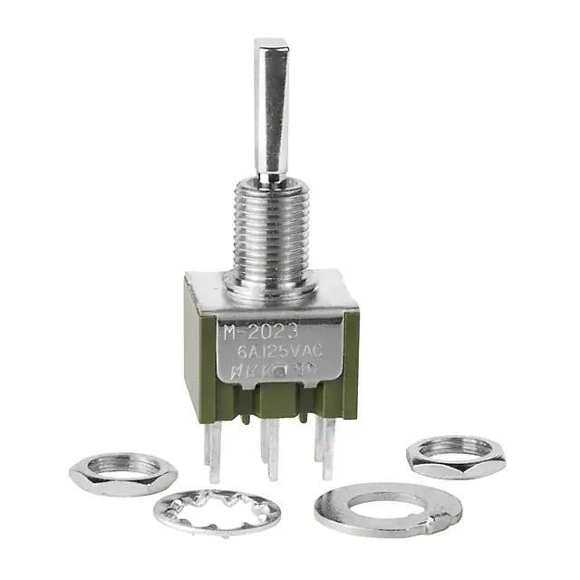 This is manufactured by NKK Switches. The manufacturer part number is M2023ES1W03. It is assigned with possible HTSUS value of 8536.50.9065. The product is rohs3 compliant. The product offers long-lasting services of 25,000 cycles. Moreover, it has pc pin terminal style. 30 v of DC voltage rating. The product has -30°c ~ 85°c operating temperature range. It also has a circular - 6.50mm dia dimensional features. The actuator is a 11.40mm long. The product exhibits 125 v of AC voltage rating. In addition, it is reach unaffected. It is shipped in bulk. It is designed as a on-off-on switching function. Its typical moisture sensitivity level is 1 (unlimited). It has an integral dpdt circuit. It has a long 20 weeks standard lead time. Additionally, the product's output is 6a (ac), 3a (dc) The splendid features of the product include epoxy sealed terminals. The product is available in panel mount configuration. The product m, is a highly preferred choice for users. The product has bushing thread of 1/4-40. The product carries flatted actuator. Is this product illuminated? non-illuminated. The actuator is designed from sturdy brass, chrome plated material. Moreover, it corresponds to m2023es, a base product number of the product. The product is designated with the ear99 code number