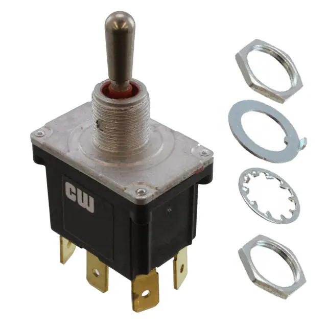 This is manufactured by CW Industries. The manufacturer part number is GTB-3B17. It is assigned with possible HTSUS value of 8536.50.9065. The product is rohs3 compliant. The product offers long-lasting services of 30,000 cycles. Moreover, it has quick connect - 0.250" (6.3mm) terminal style. It also has a circular - 12.00mm dia dimensional features. The actuator is a 17.00mm long. The product exhibits 125 v of AC voltage rating. In addition, it is reach unaffected. It is shipped in bulk. It is designed as a mom-off-mom switching function. Its typical moisture sensitivity level is 1 (unlimited). It has an integral dpdt circuit. It has a long 19 weeks standard lead time. Additionally, the product's output is 12a (ac) It is IP rated with ip68 - dust tight, waterproof. The product is available in panel mount configuration. The product gtb, is a highly preferred choice for users. The product has bushing thread of 15/32-32. The product carries standard round actuator. Is this product illuminated? non-illuminated. The actuator is designed from sturdy brass, nickel plated material. Moreover, it corresponds to gtb-3b1, a base product number of the product. The product is designated with the ear99 code number