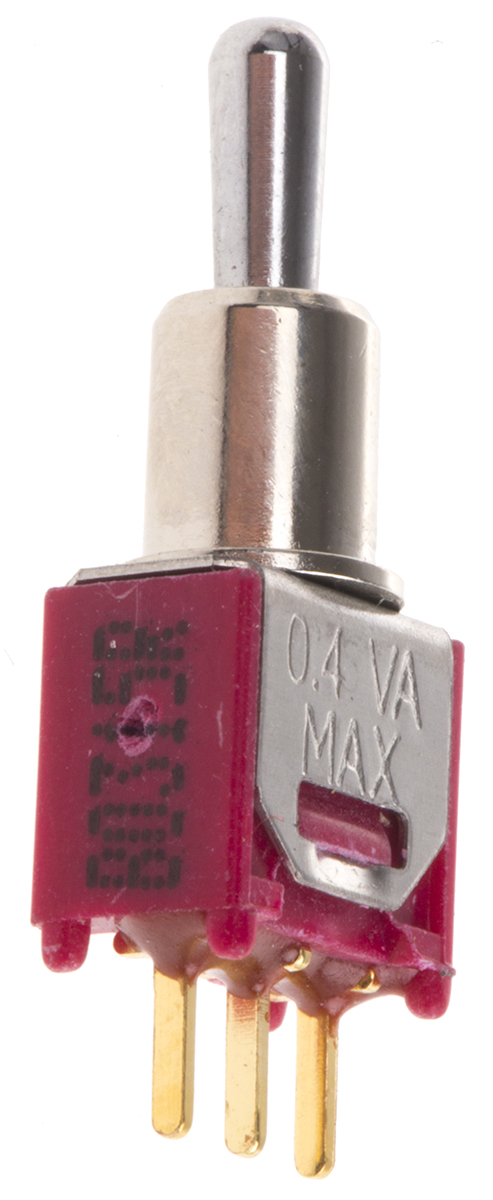 This is Toggle Switch SPDT (On)-Off-On 400 mA @ 20 V PCB manufactured by RS Pro. The manufacturer part number is 448-0810. It features a 0.02ω contact resistance. The actuator is a 5.33mm long. The product is available in pcb configuration. The actuator is designed from sturdy brass material. Whereas, the minimum operating temperature of the product is -30°c. It has a maximum operating temperature of +85°c. The terminal is a through hole type. The product is made from sturdy gold over nickel plated brass materials.