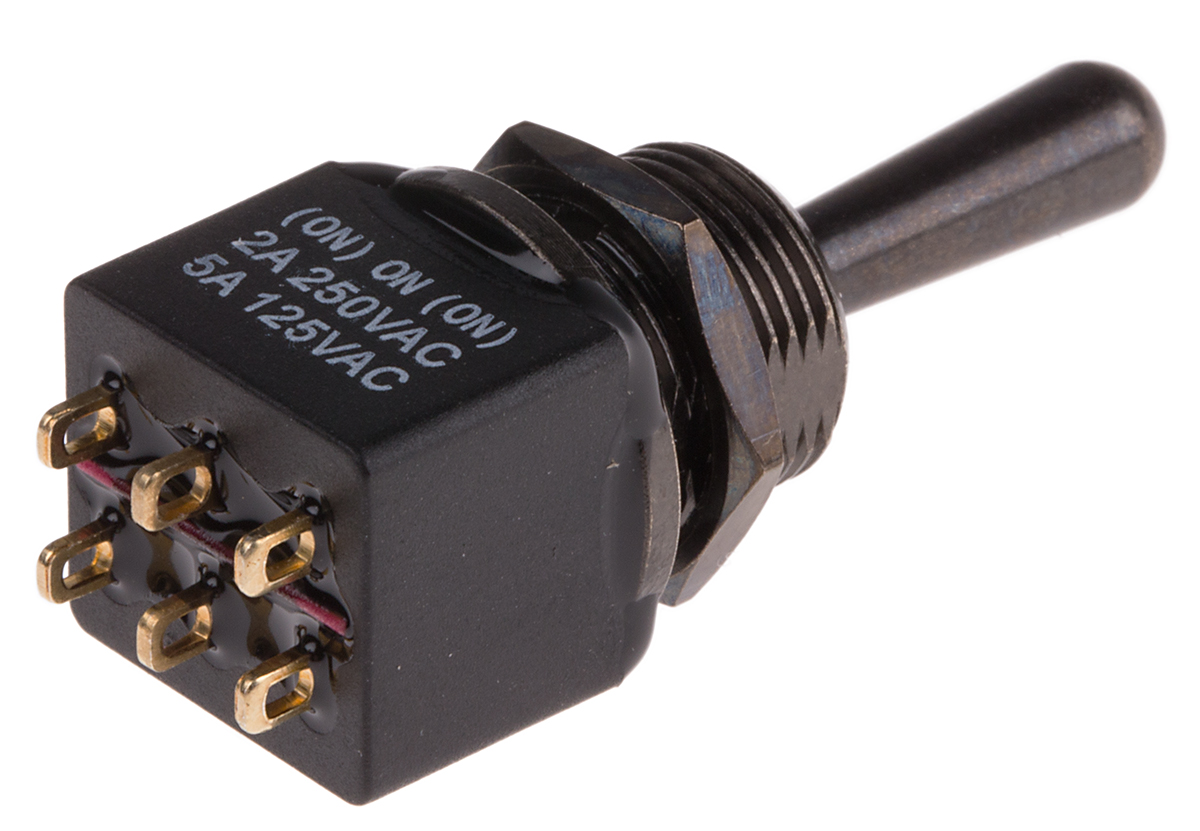 This is Toggle Switch IP67 DPDT (On)-On-(On) 5 A @ 250 V ac PCB manufactured by RS Pro. The manufacturer part number is 820-0526. It features a 10mω contact resistance. The actuator is a 18mm long. The product is available in pcb configuration. The actuator is designed from sturdy brass material. Whereas, the minimum operating temperature of the product is -30°c. The product also provide mechanical stability with 50000cycles. It has a maximum operating temperature of +85°c. The terminal is a solder type. The product is made from sturdy silver materials.