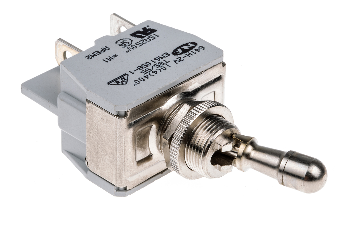 This is Apem DP Toggle Switch On-Off Panel Mount manufactured by APEM. The manufacturer part number is 641H/2-2V. It features a 0.01ω contact resistance. The actuator is a 19.4mm long. The product is available in panel mount configuration. The actuator is designed from sturdy nickel plated brass material. Whereas, the minimum operating temperature of the product is -20°c. The product is made from sturdy silver nickel alloy materials. It has a maximum operating temperature of +55°c. The terminal is a tab type.