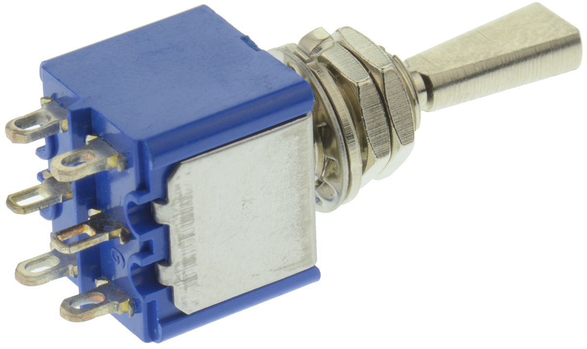This is Toggle Switch DP (On)-Off-(On) 4 A @ 30 V dc Panel Mount manufactured by Apem. The manufacturer part number is 5647A9. It features a 0.01ω contact resistance. The actuator is a 11.4mm long. The product is available in panel mount configuration. The actuator is designed from sturdy brass material. Whereas, the minimum operating temperature of the product is -40°c. The product also provide mechanical stability with 100000operations. It has a maximum operating temperature of +85°c. The terminal is a solder type. The product is made from sturdy silver materials.